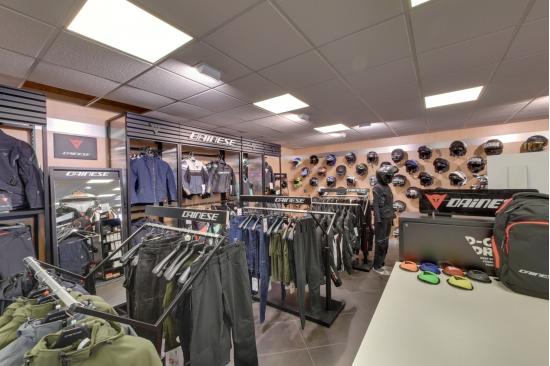 Vous y trouverez à la façon "shop in the shop" le corner Dainese car nous sommes distributeur officiel de la plus célèbre marque italienne de l'équipement du pilote.